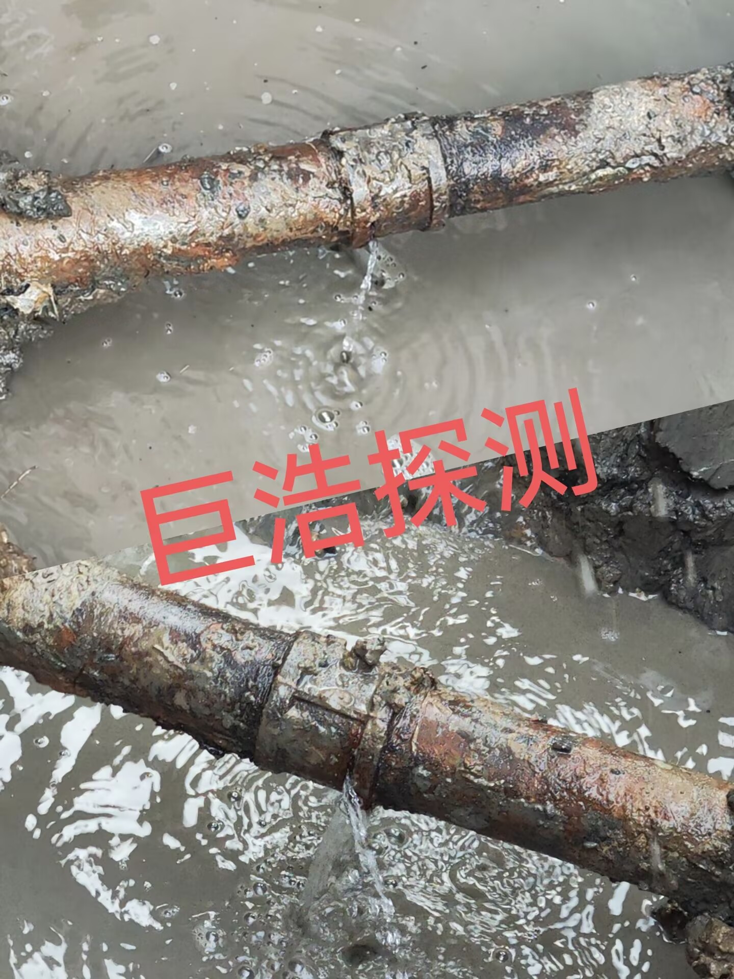 接到反映后,我司立即派出漏水檢測(cè)技術(shù)骨干前往霍邱進(jìn)行自來(lái)水管道漏水檢測(cè)工作。經(jīng)漏水檢測(cè)人員與廠區(qū)供水工作人員勘查,初步確定為一根 DN50 自來(lái)水管道連接口爆管導(dǎo)致的管道漏水,因水壓大形成路面積水,具體情況待挖開路面確定。隨后,維修人員關(guān)閉供水閥門,聯(lián)系施工人員設(shè)置圍擋,調(diào)運(yùn)機(jī)械挖開路面連夜搶修。